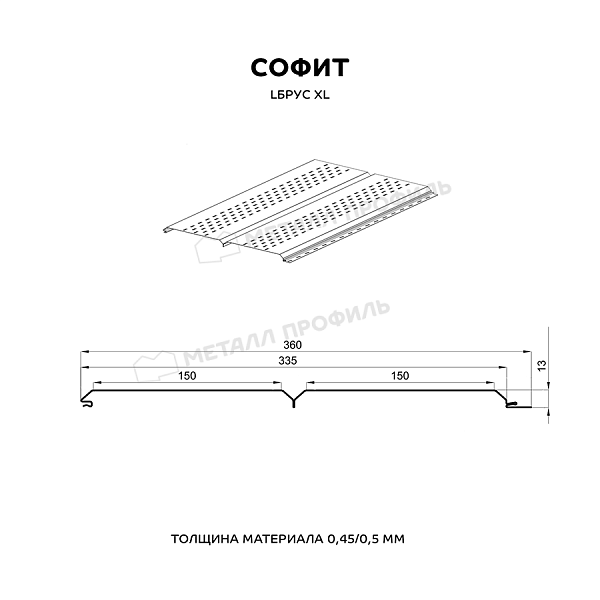 Софит МЕТАЛЛ ПРОФИЛЬ перфор. Lбрус-XL-14х335 (ECOSTEEL_T-01-Кедр-0.5) – это планки сайдинга Lбрус, на поверхности которых нанесена перфорация. Используется для оформления кровельных свесов. Софит придаёт законченный и аккуратный вид дому. Перфорация в планках поддерживает свободную циркуляцию воздуха под кровлей и предотвращают появление грибка, плесени, конденсата.Покрытие ECOSTEEL®: